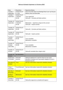 Rehearsal Schedule Sept to Xmas 25